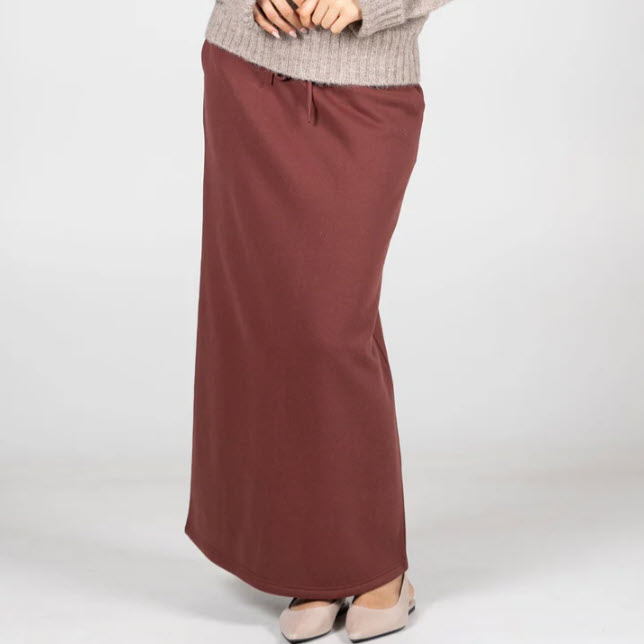 Jupe midi dotée de deux poches latérales, d’une fente au dos et d’un cordon de serrage à bande fine.