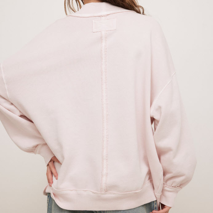 Caractéristiques : Tissu molletonné, col montant, manches longues à épaules tombantes, finitions côtelées, coutures apparentes