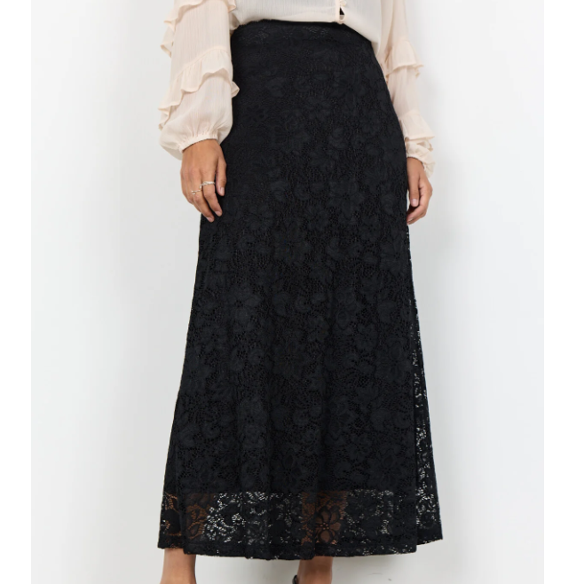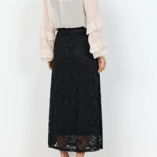 SC-ALGEA 2 présente la jupe composée à 90 % de polyamide et à 10 % d’élasthanne. Elle arbore un élégant motif de dentelle florale à la texture délicate et une coupe longueur cheville. Portez-la avec un chemisier simple et des talons pour une allure sophistiquée.