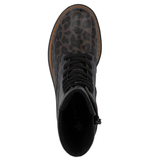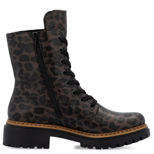 Un véritable coup de cœur ! Ces bottines motardes Rieker noires et marron sont un compagnon confortable. Fabriquées avec une construction cousue, elles sont robustes, flexibles et offrent un ajustement parfait. Malgré le laçage, la chaussure se ferme facilement grâce à la fermeture éclair. L’imprimé léopard ajoute une touche d’originalité. La semelle, à la fois légère et amortissante, offre un double confort à chaque pas. Autre atout : la semelle extra-douce. Que demander de plus !
