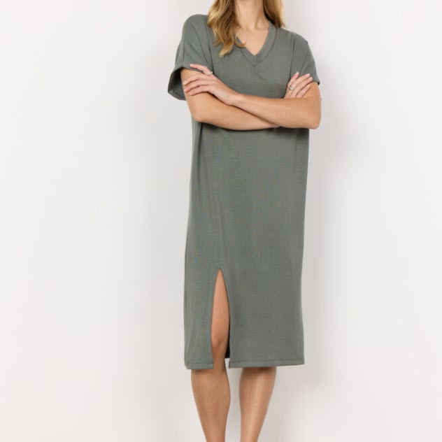 BANU 218 est une robe à col en V confectionnée dans un mélange ultra-doux de 48 % de modal, 48 % de polyester et 4 % d’élasthanne. Cette robe présente une coupe décontractée, des manches courtes et une fente latérale pour une liberté de mouvement optimale. Elle peut être associée à une variété de chaussures et d’accessoires pour diverses occasions.