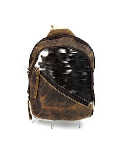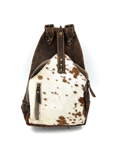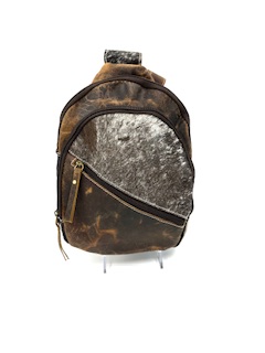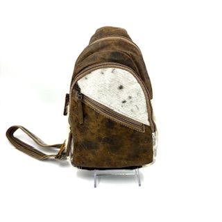 AVANI – SLING BAG – HAIR – #K-1334 – BRUN / BLANC/CUIR HUILÉ