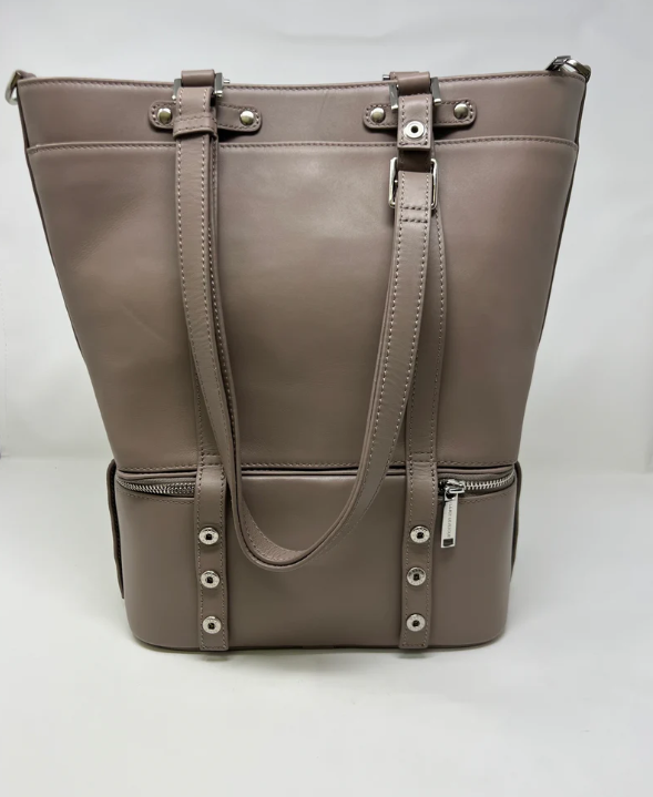 ANNICK LEVESQUE - SAC FOURRE-TOUT EN CUIR 2 EN 1 - ISOTHERME DETACHABLE - CHARLOTTE - TAUPE