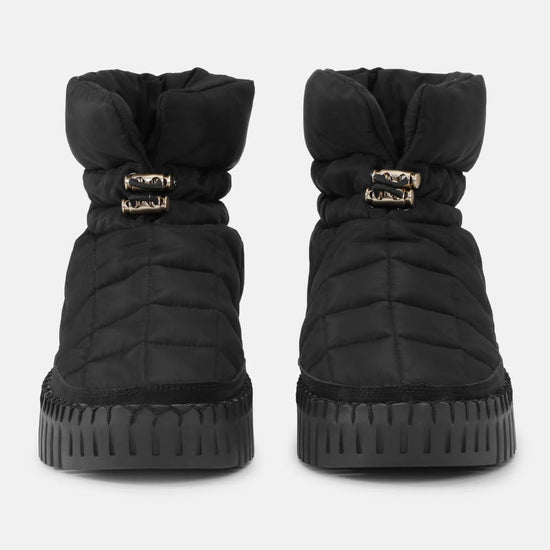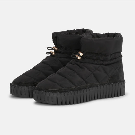 Botte d'hiver Tulip avec motif matelassé et surface déperlante. Cordons de serrage à l'avant. Rembourrage chaud en duvet synthétique et doublure en microfibre pour les journées plus froides. Semelle extérieure imperméable en fil recyclé de couleur assortie. La semelle intérieure est rembourrée et offre un excellent maintien pour un confort optimal.