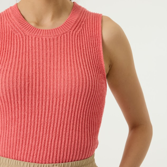 Top en maille côtelée. Ce top présente une encolure ronde et une coupe classique. Composé de 55 % de coton, 30 % de viscose et 15 % de polyamide, il offre un tissu confortable et respirant.