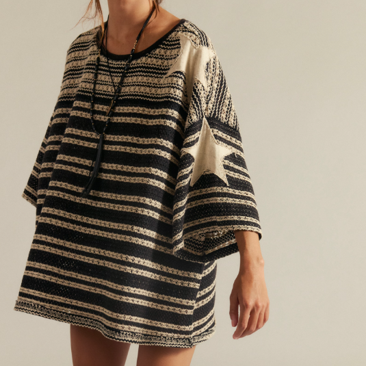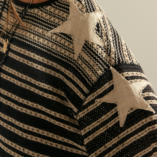 Les appliqués en forme d'étoiles font de ce t-shirt oversize à rayures en crochet de We The Free un choix audacieux parfait.