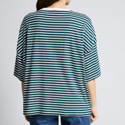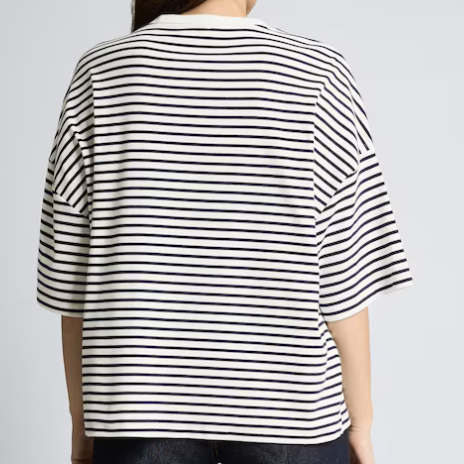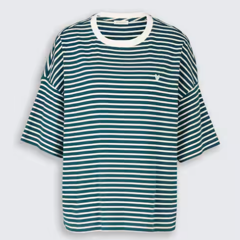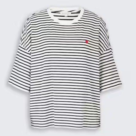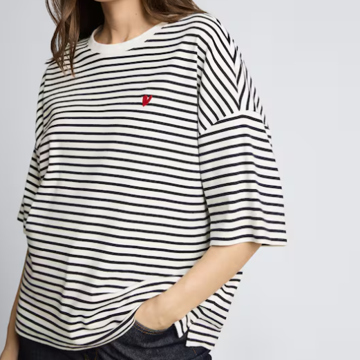 T-shirt rayé avec détail cœur sur la poitrine. Coupe décontractée grâce à ses épaules tombantes. Confectionné en coton légèrement extensible pour un confort optimal.