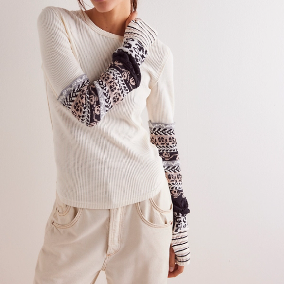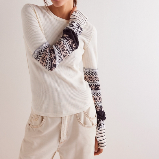 La saison des poignets retroussés est enfin arrivée ! Ce haut présente une coupe décontractée et des manches longues avec des poignets imprimés oversize et des passe-pouces.