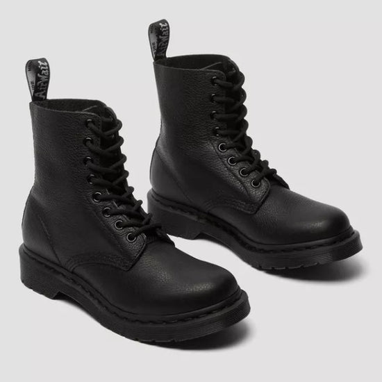 Les 1460 Pascal conservent toute l'histoire et le côté résistant et durable du modèle originel iconique à 8 œillets, mais aussi son ADN : la languette à logo au talon, les surpiqûres apparentes et les rainures soulignant la semelle à coussin d'air. Et maintenant, elles sont présentées dans une version monochrome réalisée à partir du cuir Virginia ultra-doux qui sera immédiatement agréable à porter.