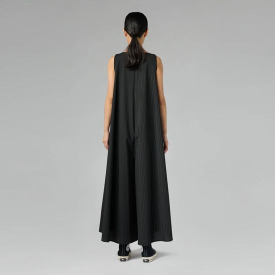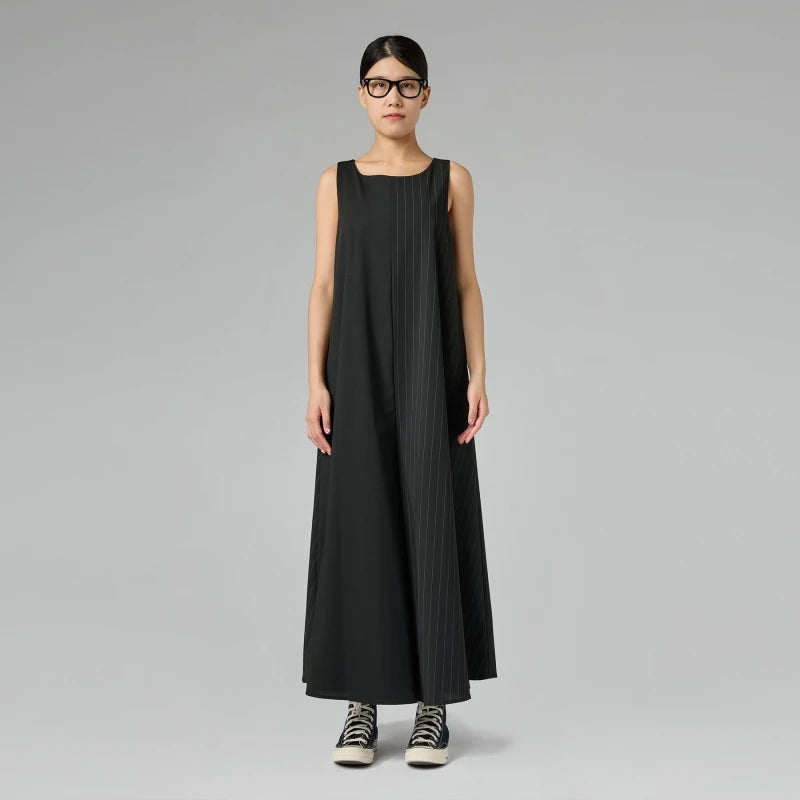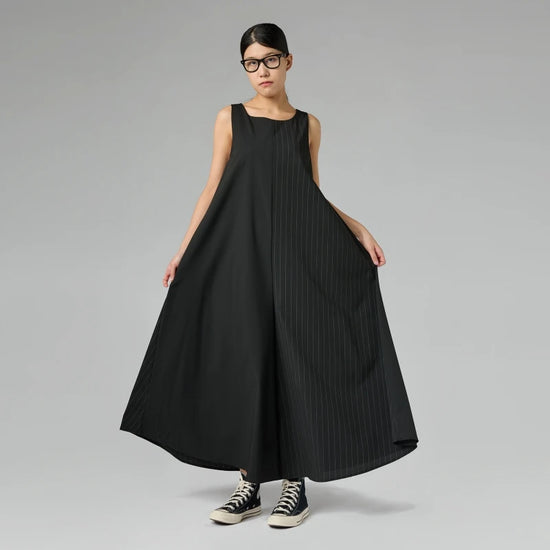 Combinaison sans manches en viscose mélangée bicolore. Encolure ronde. Poches latérales invisibles. Entrejambe ample. Coupe évasée. Coupe large et confortable.