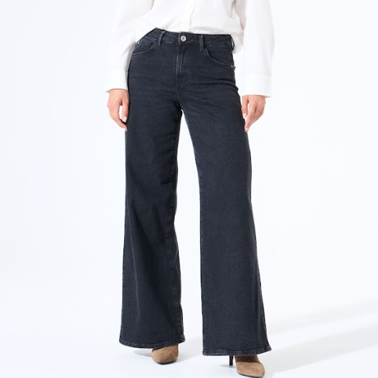 Le Celia 242 est un jean 5 poches classique à jambes extra larges. Il présente une taille haute et une fermeture à bouton et zip.