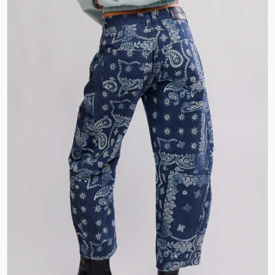 Notre jean canon préféré de notre collection We The Free, désormais décliné dans un imprimé ludique.