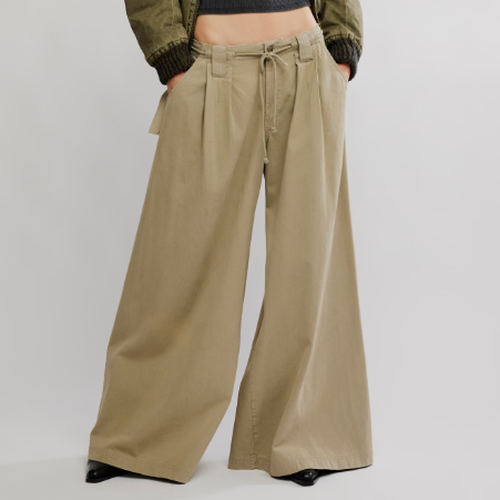 Coupe : Taille basse, silhouette à jambes larges exagérées