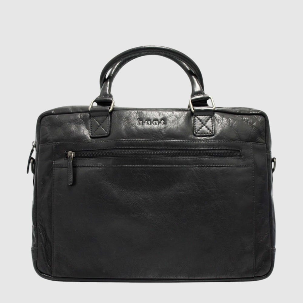 Porte-documents en cuir véritable H.U.N.T. Le porte-documents offre une solution optimale d’organisation grâce à ses multiples compartiments disposés à l’extérieur et à l’intérieur. Pour le transport du porte-documents, ce dernier possède des poignées et une bandoulière ajustable/amovible. De plus, le sac contient également une section pour ordinateur de 15 pouces.