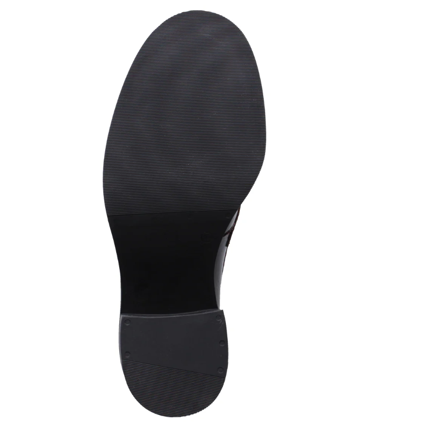 Ce mocassin à talon carré, confectionné en cuir verni, est parfait au quotidien. Son talon robuste assure confort et stabilité, tandis que le cuir richement texturé lui confère une touche de charme vintage. Élégant et polyvalent, ce mocassin sublime toutes vos tenues, du bureau aux looks décontractés, pour un choix pratique et élégant au quotidien.