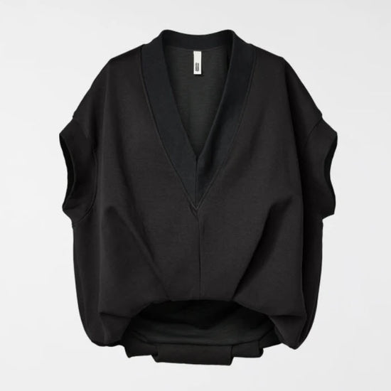 Gilet/sweat-shirt doublé en mélange de coton. Épaules tombantes. Col en V. Élastique à l'encolure et aux emmanchures. Bas bouffant. Coupe ample et confortable.