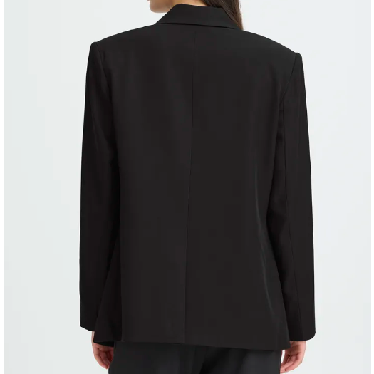 Blazer à la coupe droite et légèrement structurée, fermeture à un bouton, revers crantés et deux poches à rabat sur le devant. Manches longues et finition mate lisse.