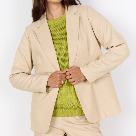 SC-CARONNE 1 est un blazer confectionné en 79 % polyester, 19 % viscose et 2 % élasthanne. Il présente un col à revers classique, une fermeture à un bouton et deux poches avant pratiques. Associez cet élégant blazer à un pantalon tailleur ou à votre jean préféré pour un look stylé.